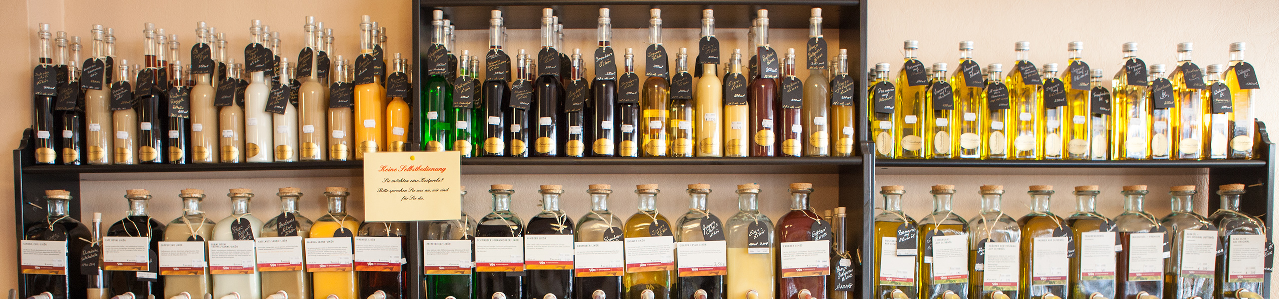 Hier finden Sie eine Liste unserer Liköre, Brände, Essige und Öle: